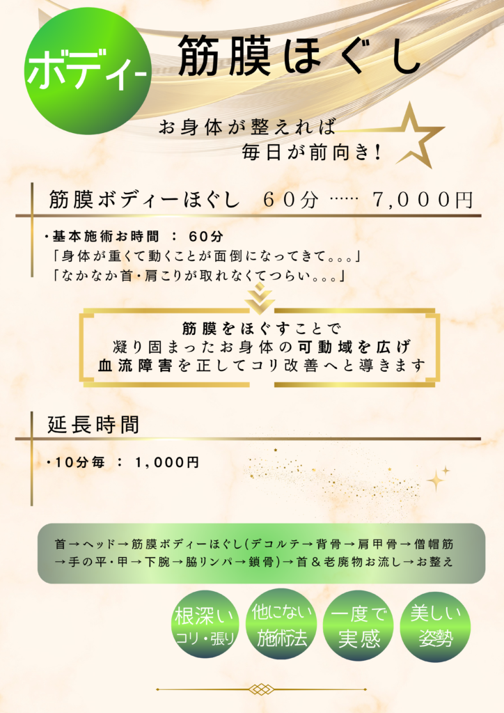 筋膜ほぐしをボディー集中メニュー誕生!
